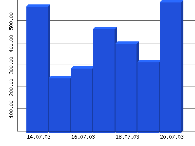 Die untenstehende Auswertung zeigt Ihnen den Datentransfer für die jeweilige Woche. Die Anzahl der Zugriffe zeigt Ihnen, wie viele HTTP-Requests (HTML-Dateien usw.) von Ihrem Paket (inkl. aller Domains) angefordert wurden. Java-Klassen (*.class), Javascript-Dateien (*.js), Style Sheets (*.css), Include- und Konfigurationsdateien (*.inc, *.cnf, *.conf) sowie Bilder (BMP, GIF, JPEG, PNG, TIF, WMF) werden nicht mitgezählt.